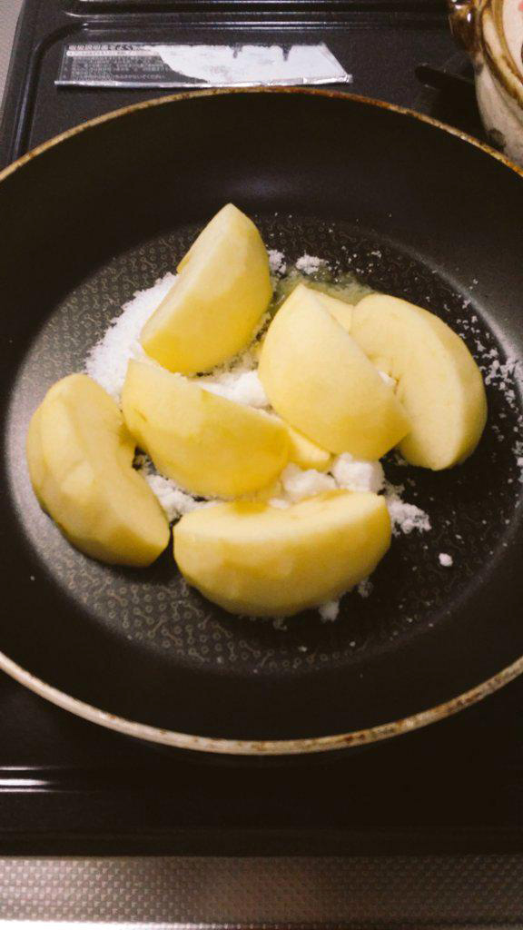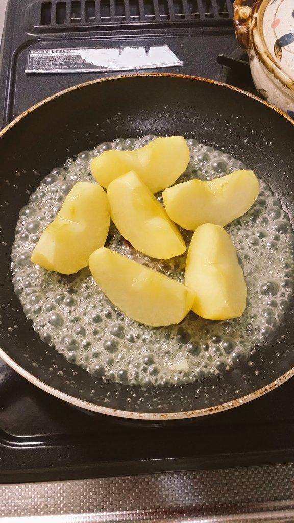 りんごの表面が透明になって、柔らかくなってきたら、水を加えるのをやめて