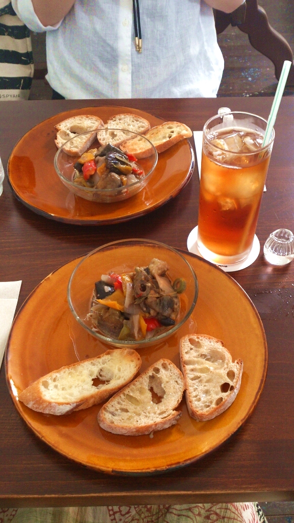 お食事にバケット付きのカポナータ(¥700)、