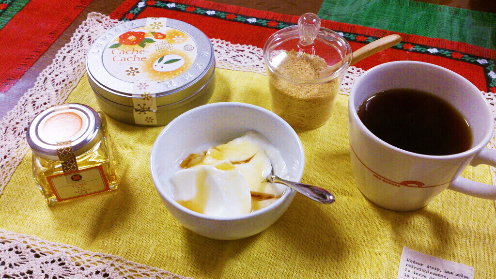 お砂糖は甜菜糖、お茶菓子はミスタードーナツのミスドビッツSpring。