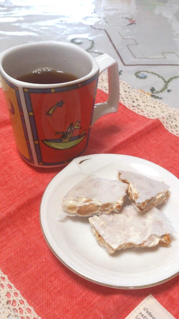 お茶菓子は Torta Turrón de Alicante というスペインのお菓子。