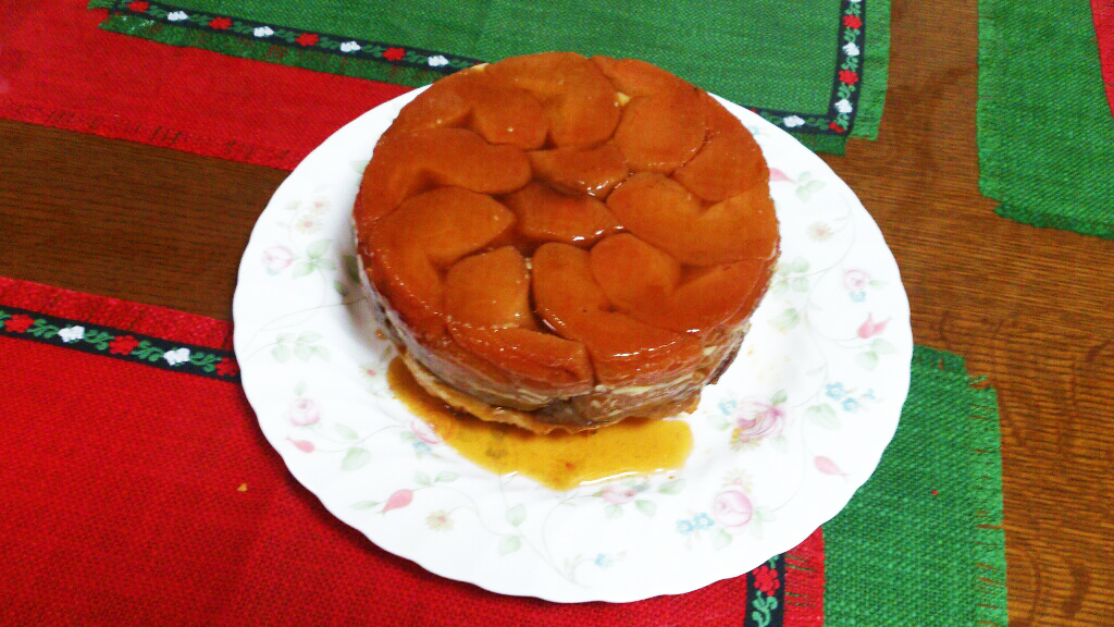 りんごを全部剥くのに余裕で一時間以上かかったり、目を離した隙に焦がしてしまったり、オーブンシートの敷きが甘くて焼いたり冷やしたりしている間にどんどん煮汁が染み出してしまったり、丸形の継ぎ目がキャラメルで固まってしまい型から外せず悪戦苦闘したり、なぜかバターがところどころ白く固まってしまっていたり…。